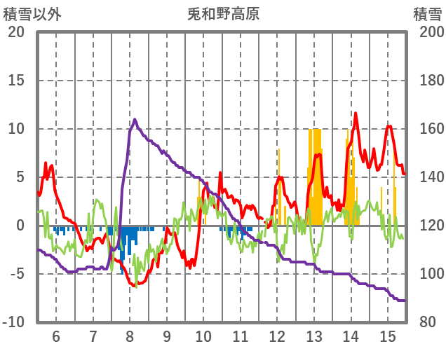 | 日 | 時 | 気温 | 降水 | 風向/風速 | 日照 | 積雪 | 降雪 |