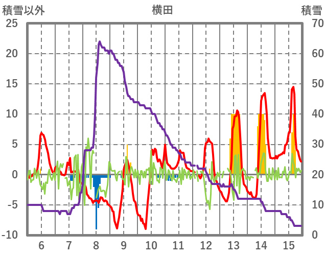 | 日 | 時 | 気温 | 降水 | 風向/風速 | 日照 | 積雪 | 降雪 |