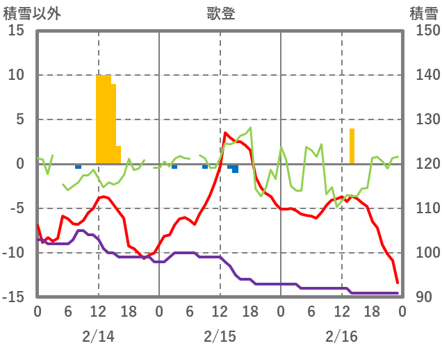 | 日 | 時 | 気温 | 降水 | 風向/風速 | 日照 | 積雪 | 降雪 |