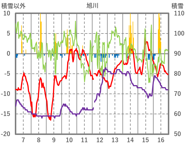 | 日 | 時 | 気温 | 降水 | 風向/風速 | 日照 | 積雪 | 降雪 |
