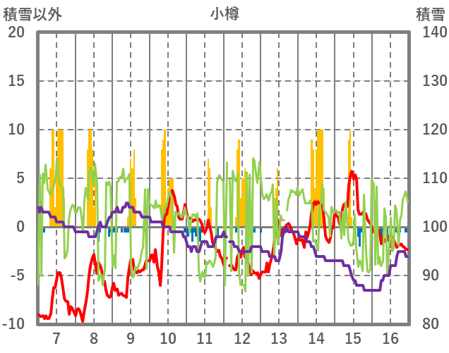 | 日 | 時 | 気温 | 降水 | 風向/風速 | 日照 | 積雪 | 降雪 |