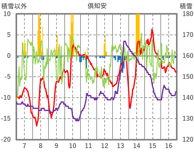 | 日 | 時 | 気温 | 降水 | 風向/風速 | 日照 | 積雪 | 降雪 |