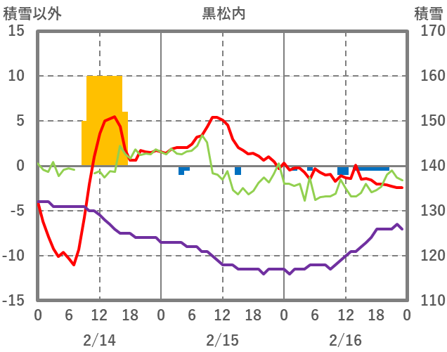 | 日 | 時 | 気温 | 降水 | 風向/風速 | 日照 | 積雪 | 降雪 |
