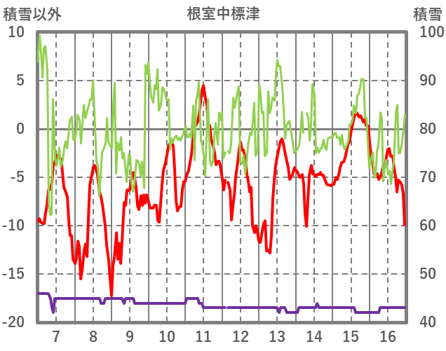 | 日 | 時 | 気温 | 降水 | 風向/風速 | 日照 | 積雪 | 降雪 |