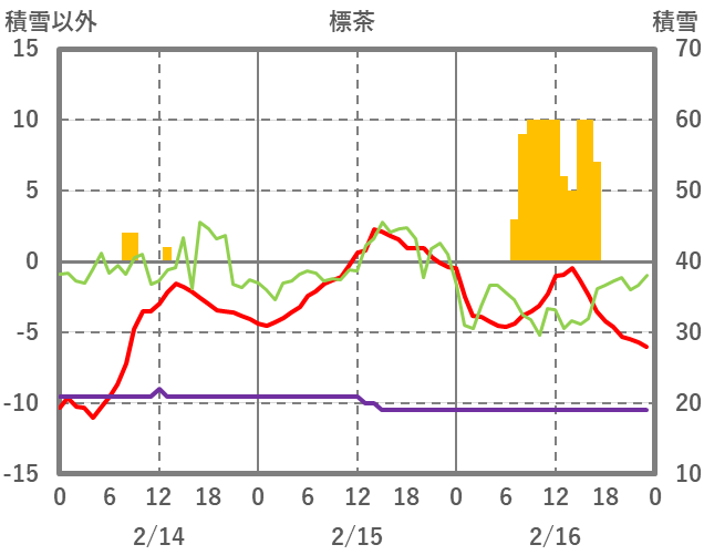 | 日 | 時 | 気温 | 降水 | 風向/風速 | 日照 | 積雪 | 降雪 |