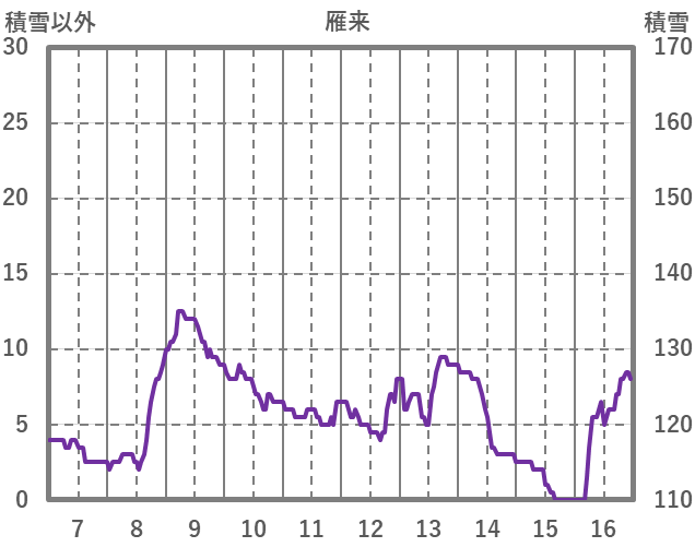 | 日 | 時 | 気温 | 降水 | 風向/風速 | 日照 | 積雪 | 降雪 |