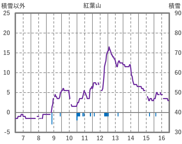 | 日 | 時 | 気温 | 降水 | 風向/風速 | 日照 | 積雪 | 降雪 |