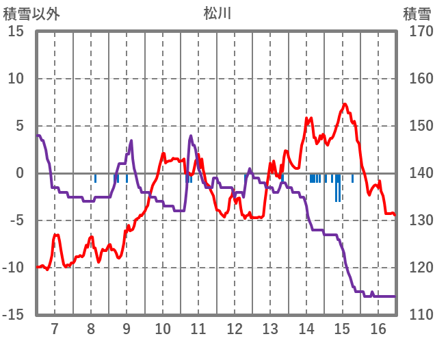 | 日 | 時 | 気温 | 降水 | 風向/風速 | 日照 | 積雪 | 降雪 |