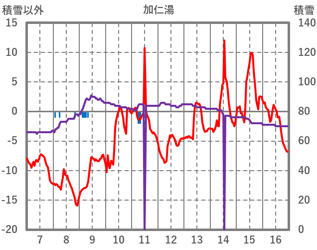 | 日 | 時 | 気温 | 降水 | 風向/風速 | 日照 | 積雪 | 降雪 |