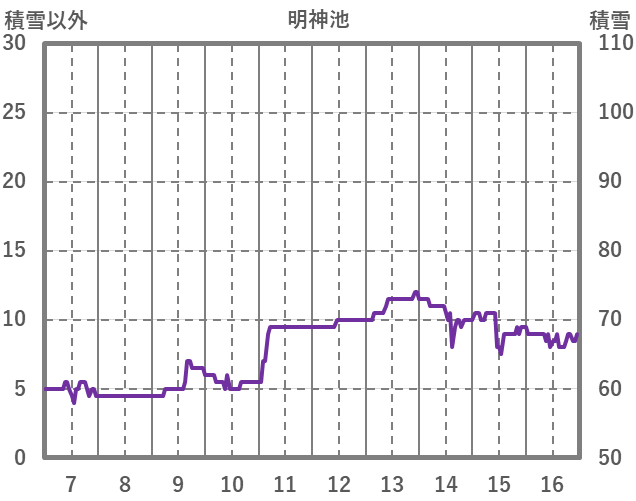 | 日 | 時 | 気温 | 降水 | 風向/風速 | 日照 | 積雪 | 降雪 |
