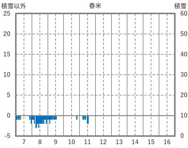 | 日 | 時 | 気温 | 降水 | 風向/風速 | 日照 | 積雪 | 降雪 |