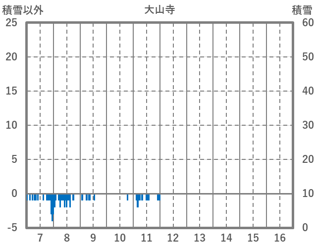 | 日 | 時 | 気温 | 降水 | 風向/風速 | 日照 | 積雪 | 降雪 |