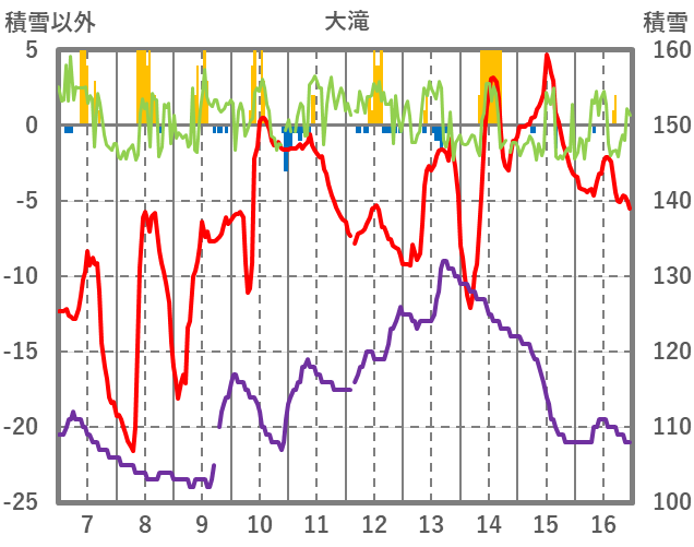 | 日 | 時 | 気温 | 降水 | 風向/風速 | 日照 | 積雪 | 降雪 |