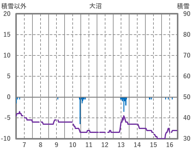| 日 | 時 | 気温 | 降水 | 風向/風速 | 日照 | 積雪 | 降雪 |