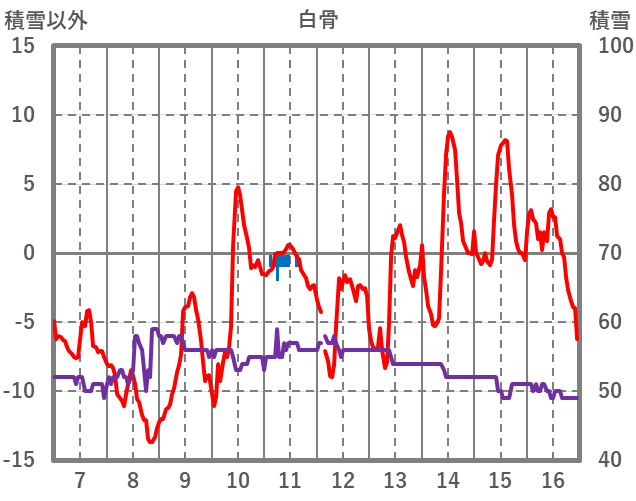 | 日 | 時 | 気温 | 降水 | 風向/風速 | 日照 | 積雪 | 降雪 |