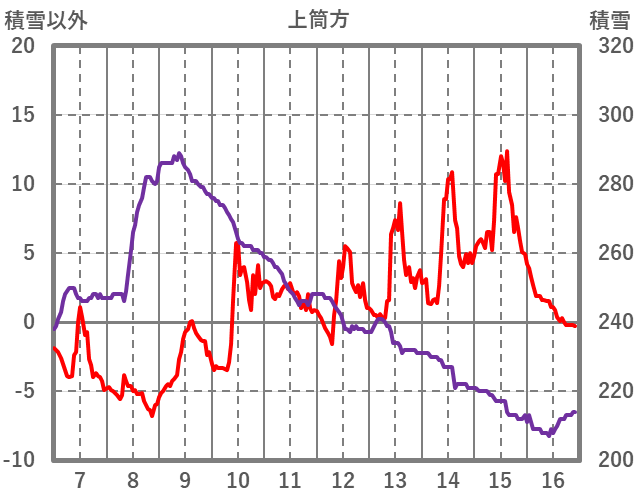 | 日 | 時 | 気温 | 降水 | 風向/風速 | 日照 | 積雪 | 降雪 |