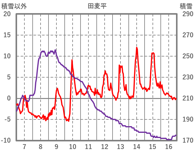 | 日 | 時 | 気温 | 降水 | 風向/風速 | 日照 | 積雪 | 降雪 |