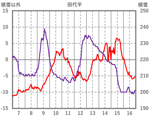| 日 | 時 | 気温 | 降水 | 風向/風速 | 日照 | 積雪 | 降雪 |