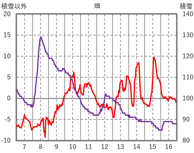 | 日 | 時 | 気温 | 降水 | 風向/風速 | 日照 | 積雪 | 降雪 |