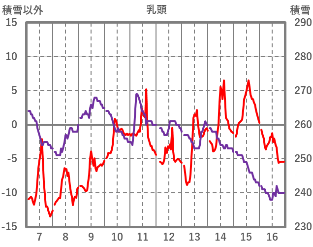 | 日 | 時 | 気温 | 降水 | 風向/風速 | 日照 | 積雪 | 降雪 |