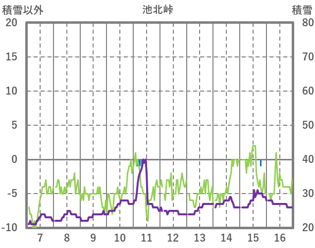 | 日 | 時 | 気温 | 降水 | 風向/風速 | 日照 | 積雪 | 降雪 |