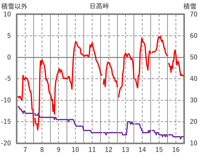 | 日 | 時 | 気温 | 降水 | 風向/風速 | 日照 | 積雪 | 降雪 |