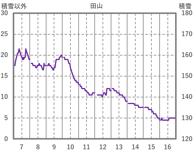 | 日 | 時 | 気温 | 降水 | 風向/風速 | 日照 | 積雪 | 降雪 |