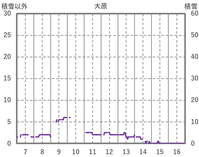 | 日 | 時 | 気温 | 降水 | 風向/風速 | 日照 | 積雪 | 降雪 |