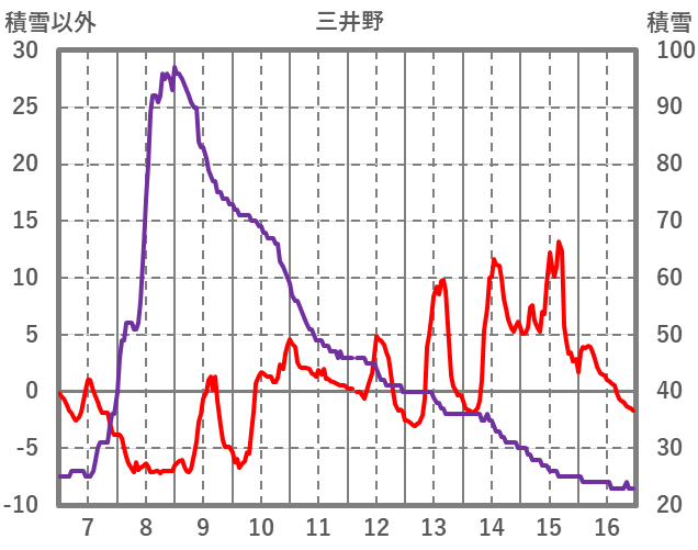 | 日 | 時 | 気温 | 降水 | 風向/風速 | 日照 | 積雪 | 降雪 |