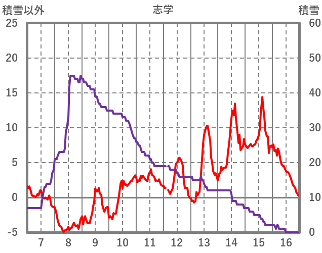 | 日 | 時 | 気温 | 降水 | 風向/風速 | 日照 | 積雪 | 降雪 |