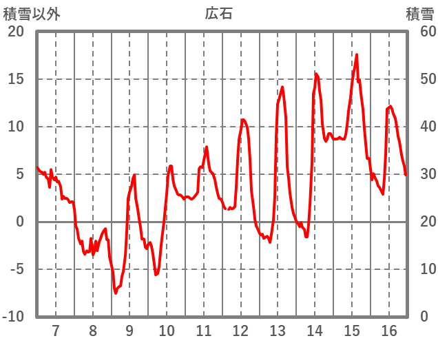 | 日 | 時 | 気温 | 降水 | 風向/風速 | 日照 | 積雪 | 降雪 |