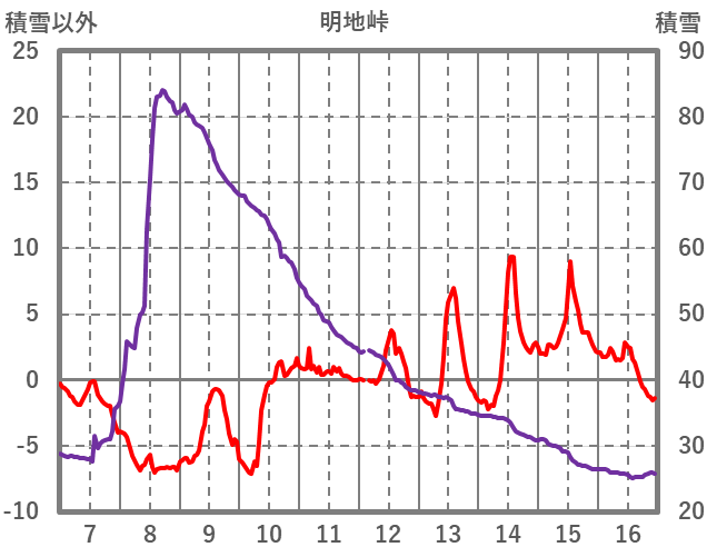 | 日 | 時 | 気温 | 降水 | 風向/風速 | 日照 | 積雪 | 降雪 |