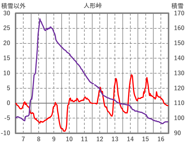 | 日 | 時 | 気温 | 降水 | 風向/風速 | 日照 | 積雪 | 降雪 |