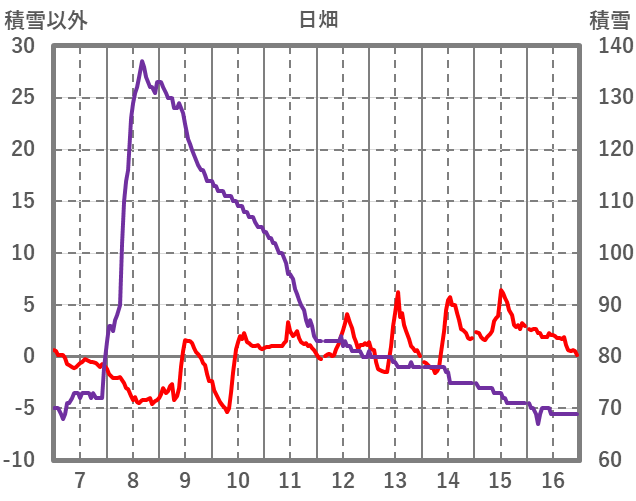 | 日 | 時 | 気温 | 降水 | 風向/風速 | 日照 | 積雪 | 降雪 |