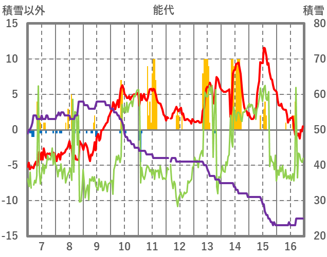 | 日 | 時 | 気温 | 降水 | 風向/風速 | 日照 | 積雪 | 降雪 |