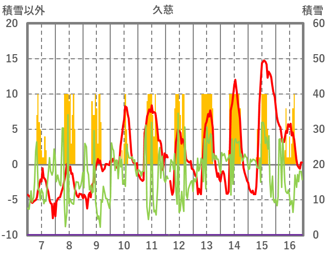 | 日 | 時 | 気温 | 降水 | 風向/風速 | 日照 | 積雪 | 降雪 |
