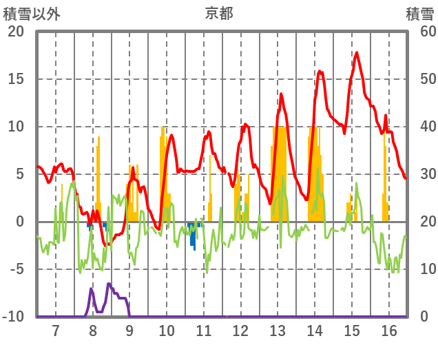 | 日 | 時 | 気温 | 降水 | 風向/風速 | 日照 | 積雪 | 降雪 |