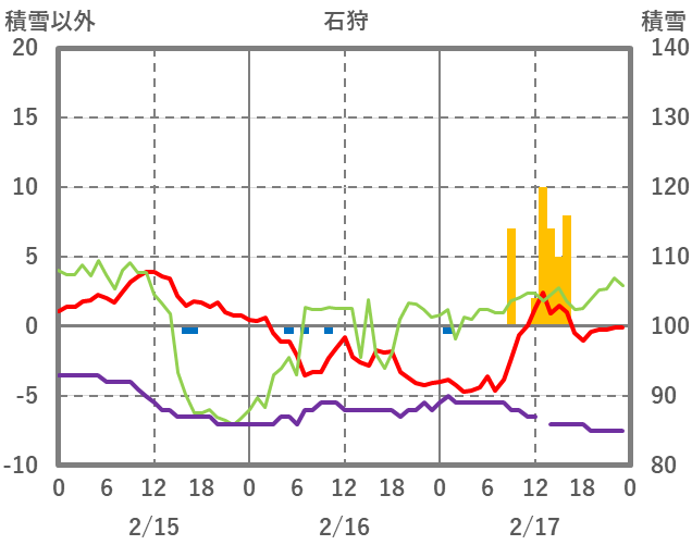 | 日 | 時 | 気温 | 降水 | 風向/風速 | 日照 | 積雪 | 降雪 |