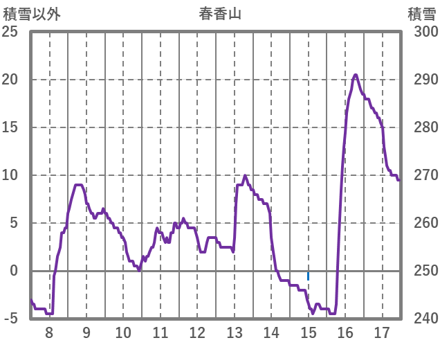 | 日 | 時 | 気温 | 降水 | 風向/風速 | 日照 | 積雪 | 降雪 |