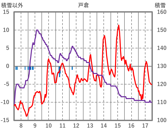 | 日 | 時 | 気温 | 降水 | 風向/風速 | 日照 | 積雪 | 降雪 |
