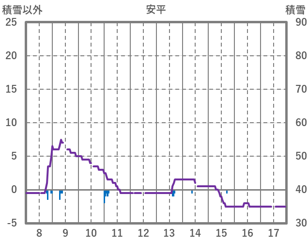 | 日 | 時 | 気温 | 降水 | 風向/風速 | 日照 | 積雪 | 降雪 |