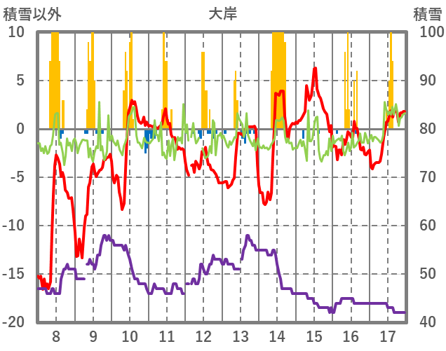 | 日 | 時 | 気温 | 降水 | 風向/風速 | 日照 | 積雪 | 降雪 |