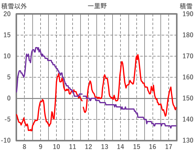 | 日 | 時 | 気温 | 降水 | 風向/風速 | 日照 | 積雪 | 降雪 |