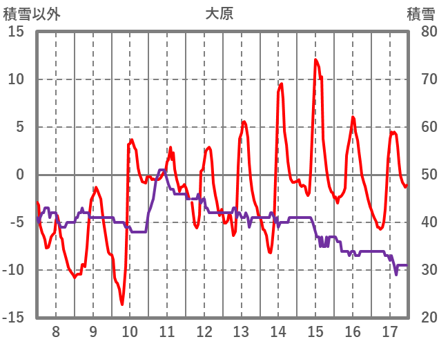 | 日 | 時 | 気温 | 降水 | 風向/風速 | 日照 | 積雪 | 降雪 |