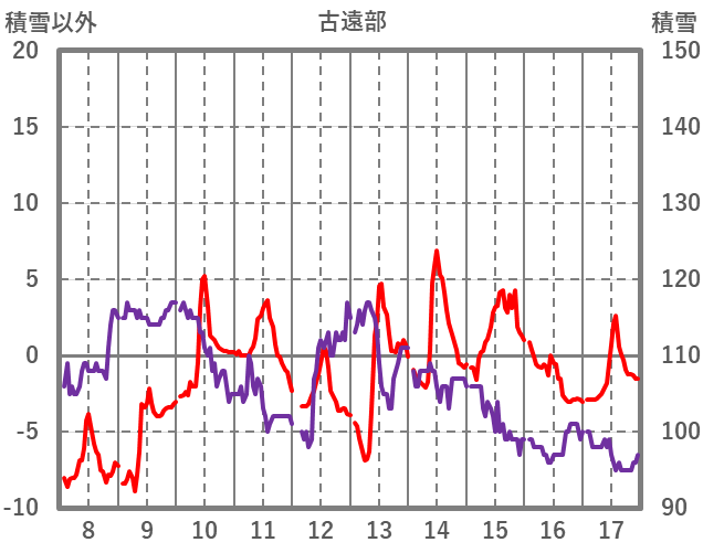 | 日 | 時 | 気温 | 降水 | 風向/風速 | 日照 | 積雪 | 降雪 |