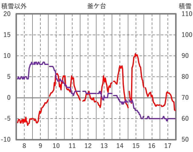 | 日 | 時 | 気温 | 降水 | 風向/風速 | 日照 | 積雪 | 降雪 |