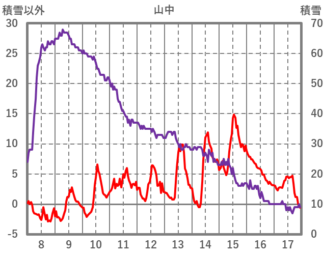 | 日 | 時 | 気温 | 降水 | 風向/風速 | 日照 | 積雪 | 降雪 |