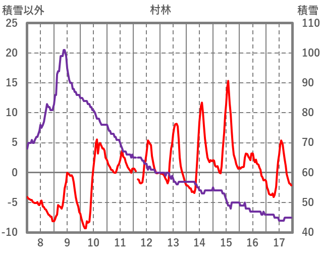 | 日 | 時 | 気温 | 降水 | 風向/風速 | 日照 | 積雪 | 降雪 |