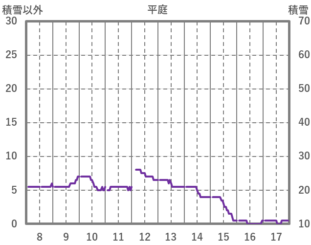 | 日 | 時 | 気温 | 降水 | 風向/風速 | 日照 | 積雪 | 降雪 |