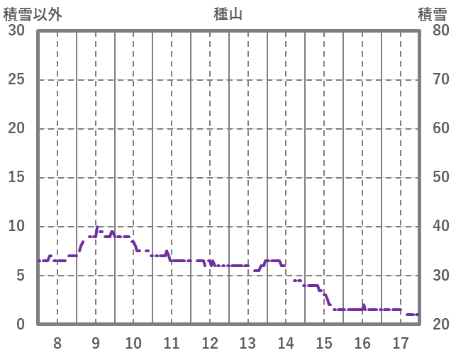 | 日 | 時 | 気温 | 降水 | 風向/風速 | 日照 | 積雪 | 降雪 |